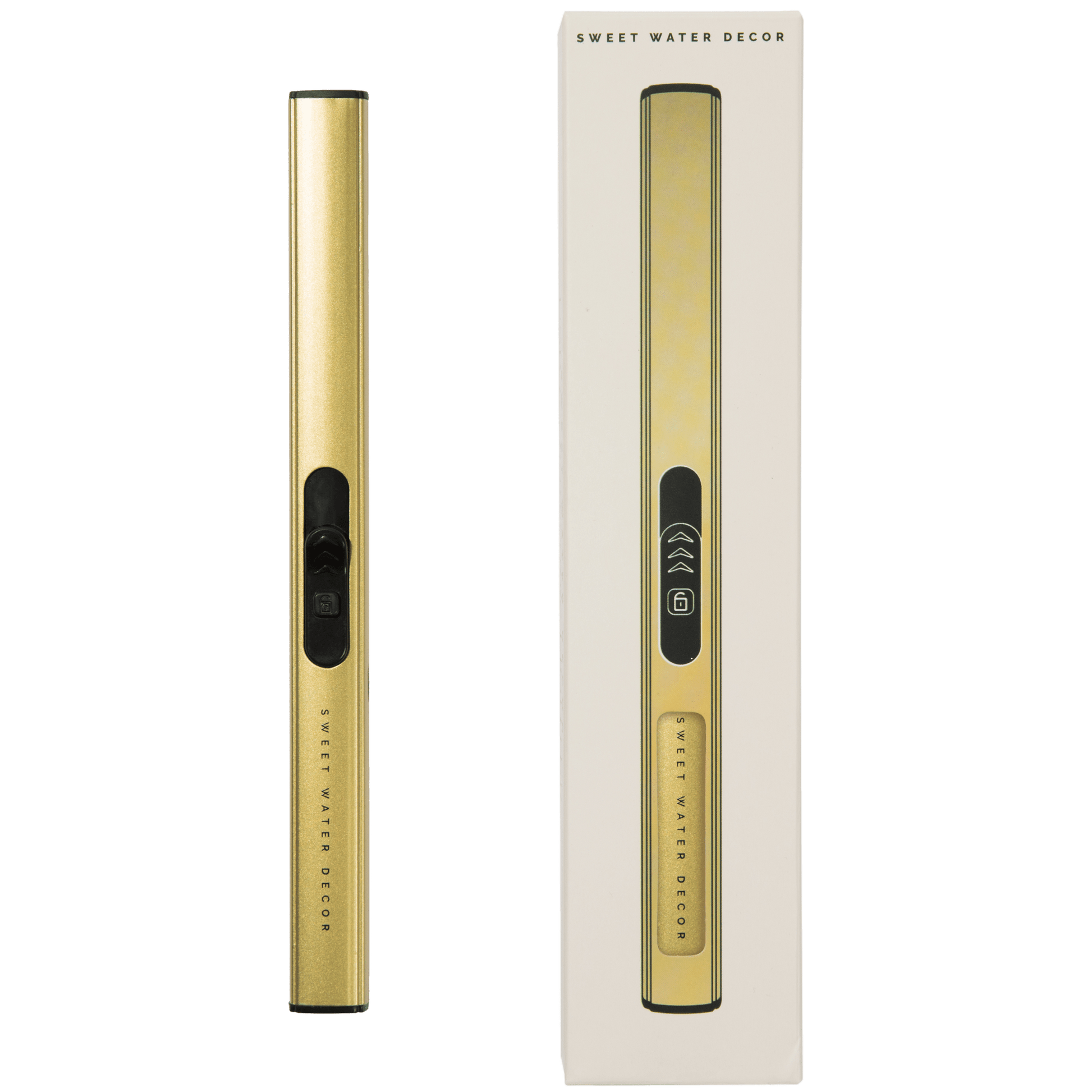 The lighter features an ultra-thin silhouette cloaked in a radiant gold finish, transforming a simple tool into an attractive desk or console accent. It achieves a full charge in just 1-2 hours, providing power for hundreds of uses.