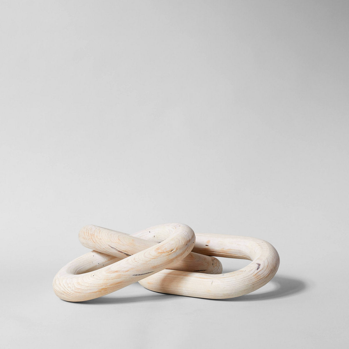 Introducing the large link Pale Wood Chain, a beautifully sculptural accent piece inspired by minimalist, coastal, and Scandinavian design aesthetics. Instead of charring, each link is meticulously hand-assembled and treated with a light white-wash, allowing the natural grain of the pale wood to subtly show through.