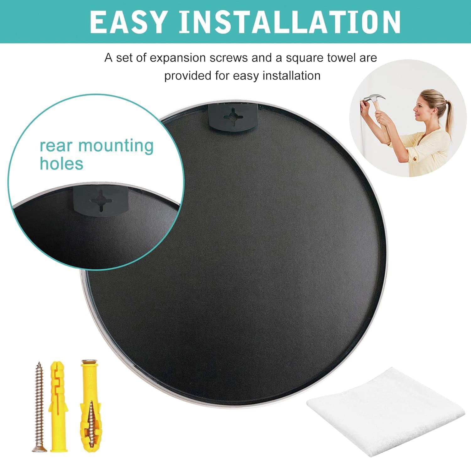 - The wall mirror is made of high quality 4mm HD glass with no distortion, and the brushed frame of circle mirror is premium anti-rust aluminum alloy.