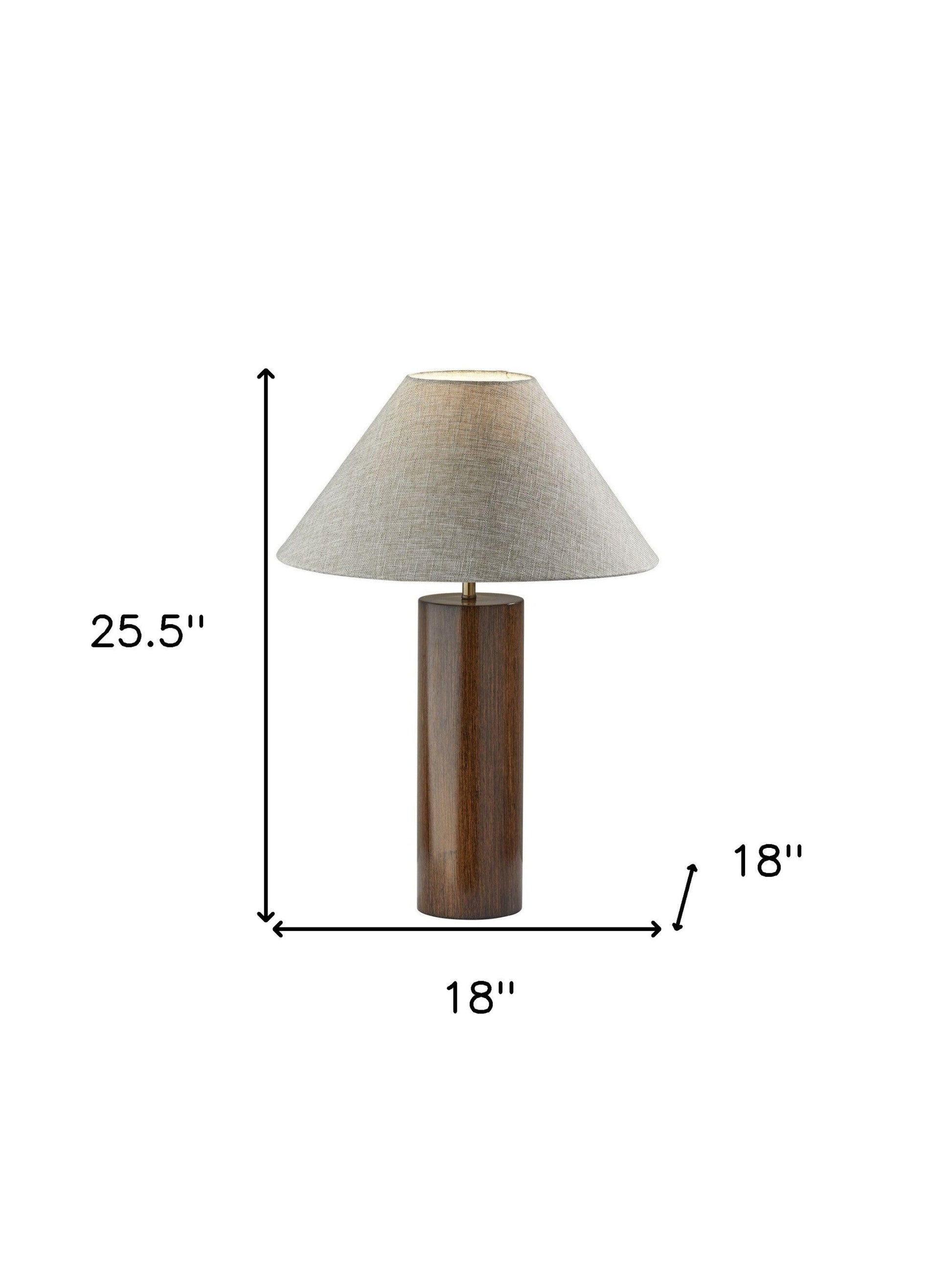 Crowning the wooden base is a beautifully tapered, conical shade made from a textured grey linen fabric. This combination creates a warm, diffused light, perfect for creating an inviting ambiance. The Grove Table Lamp is an ideal choice for adding a touch of organic warmth and modern sensibility to living rooms, studies, or bedside tables.